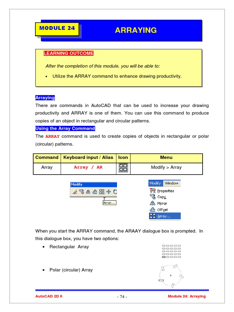 The following steps describe the procedure to use the ARRAY command to