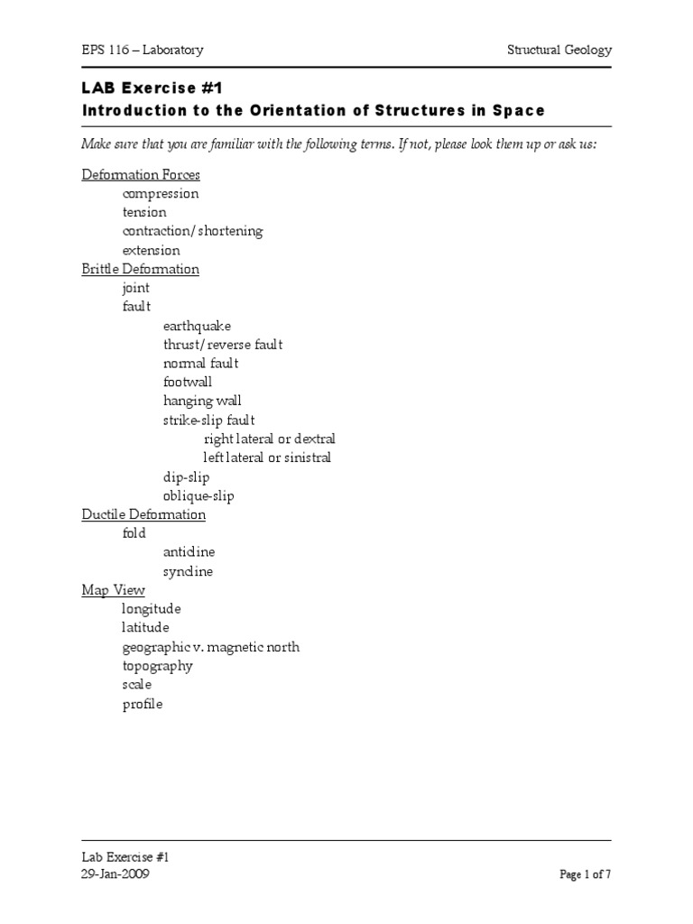 2. During lab, record the attitude of at least 6 planar features and 2 linear features. Be