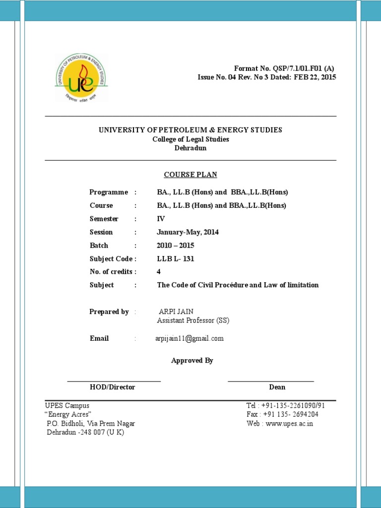 procedure followed in civil courts. A student of law should know the procedural law for the
