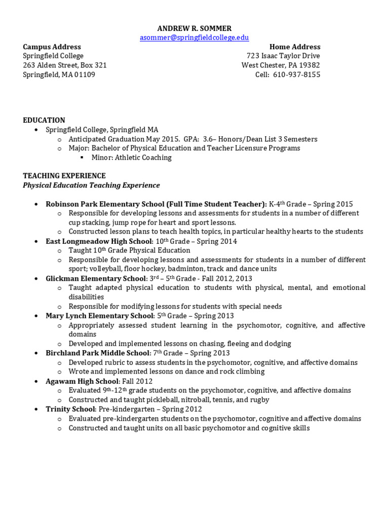Steffen Siebert: Springfield Professor/Coach: 225-287-9278 or ssiebert@springfieldcollege.edu