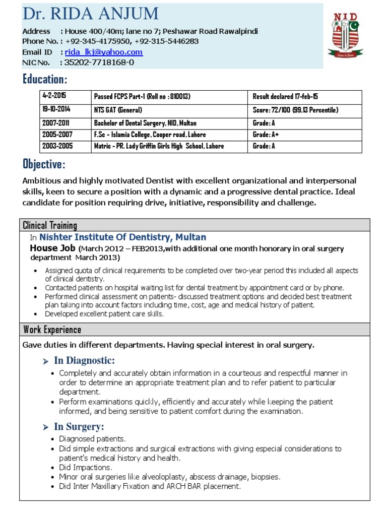 skills, keen to secure a position with a dynamic and a progressive dental practice. Ideal