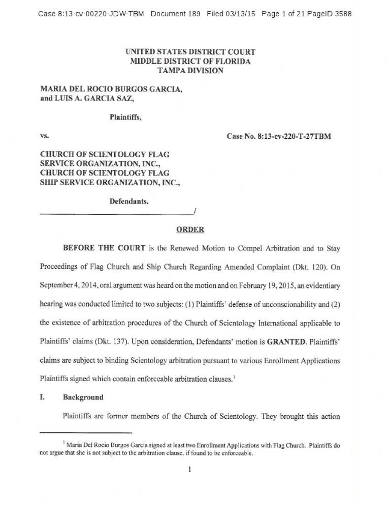 Garcia v. Scientology: Order To Compel Arbitration