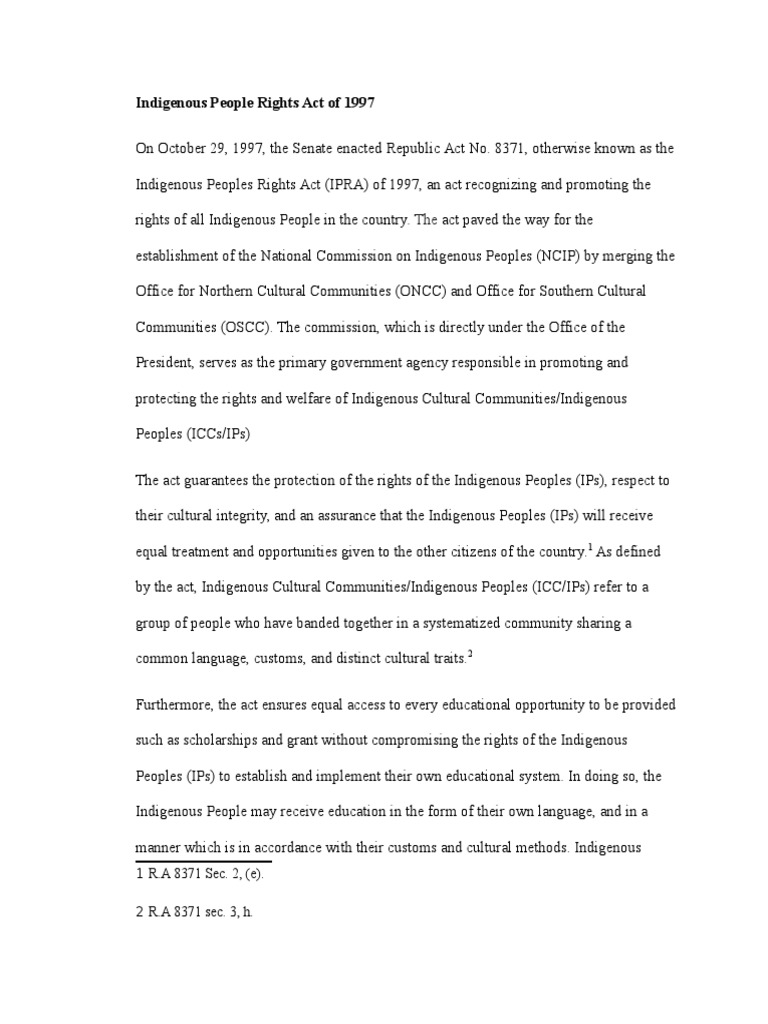 On October 29, 1997, the Senate enacted Republic Act No. 8371, otherwise known as the