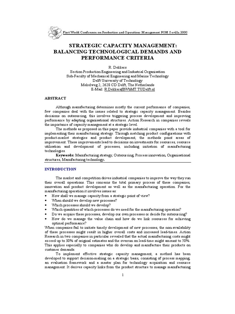manufacturing strategy, meeting technological as well as performance requirements, core
