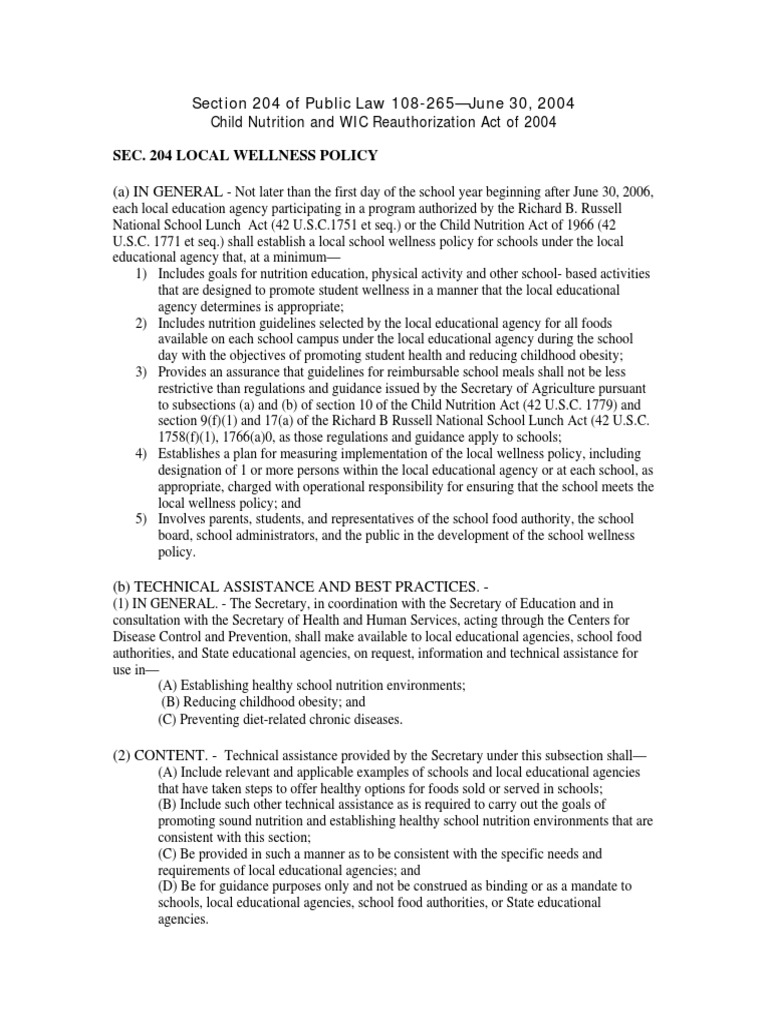 U.S.C. 1771 et seq.) shall establish a local school wellness policy for schools under the local