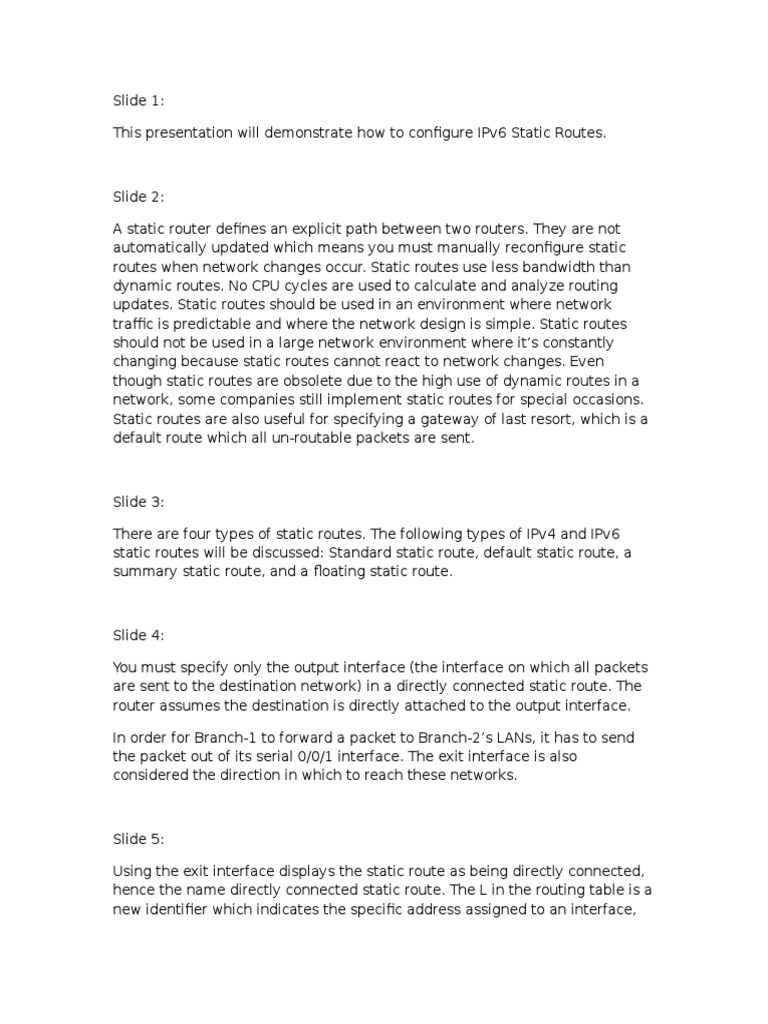 This presentation will demonstrate how to configure IPv6 Static Routes.