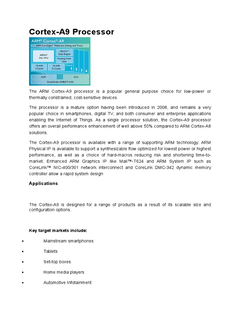 enabling the Internet of Things. As a single processor solution, the Cortex-A9 processor