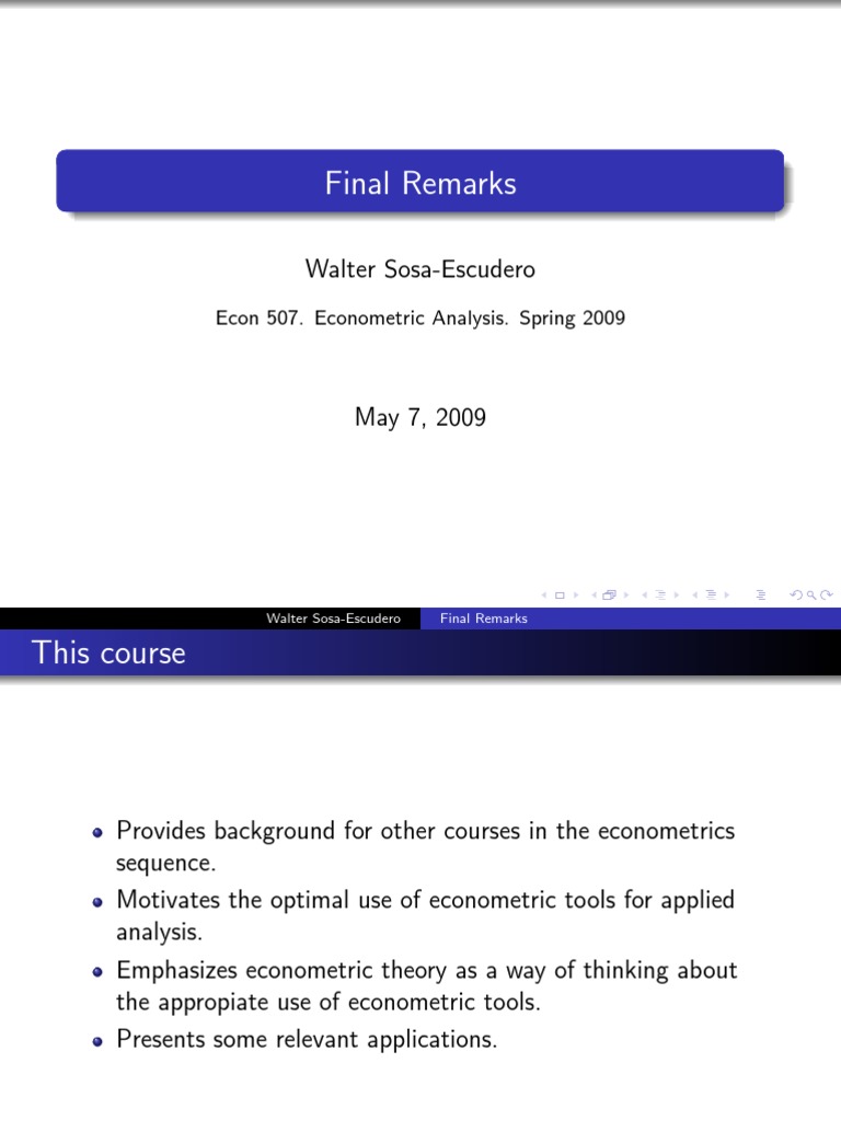 Provides background for other courses in the econometrics