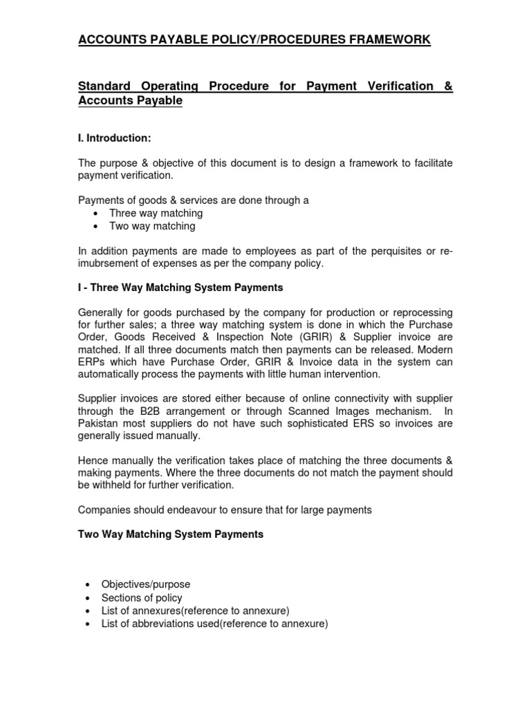 ACCOUNTS PAYABLE POLICY/PROCEDURES FRAMEWORK