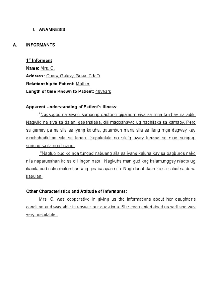 Mrs. R.D during our interview she is welling to verbalize all about on patient O.D