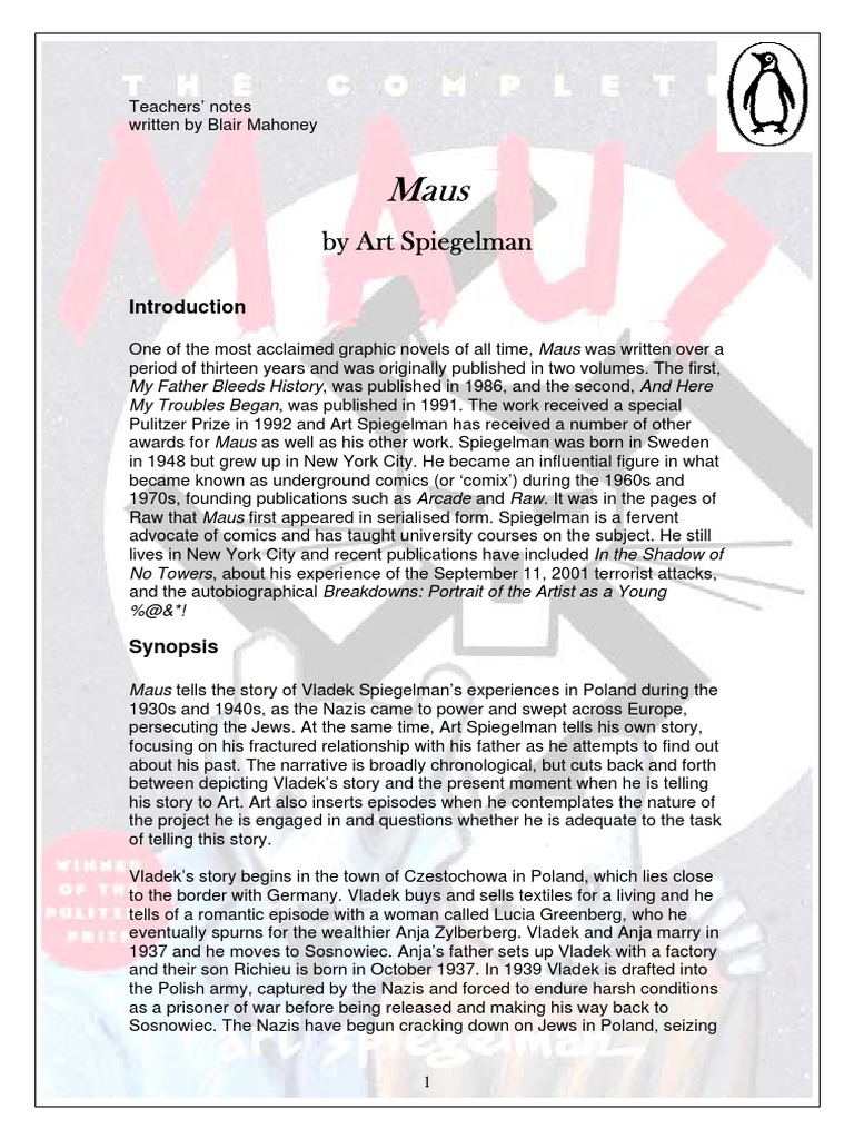 awards for Maus as well as his other work. Spiegelman was born in Sweden