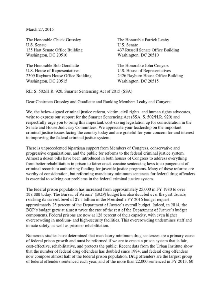We hope you will give the Smarter Sentencing Act the consideration and passage through