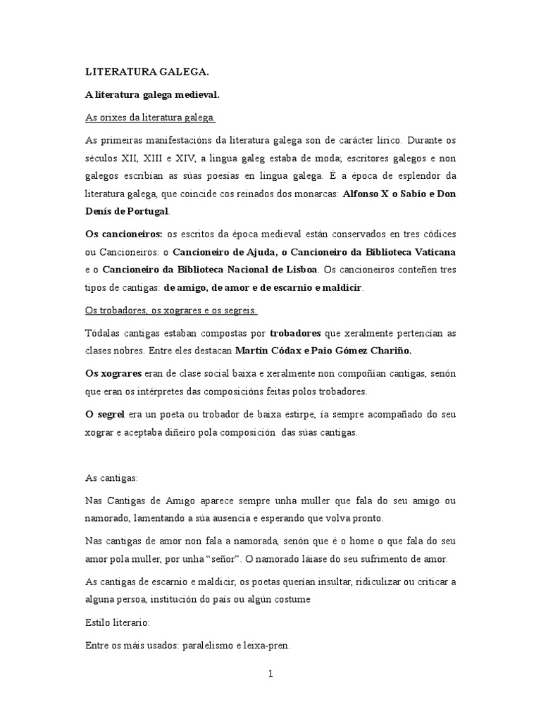 As primeiras manifestacins da literatura galega son de carcter lrico. Durante os