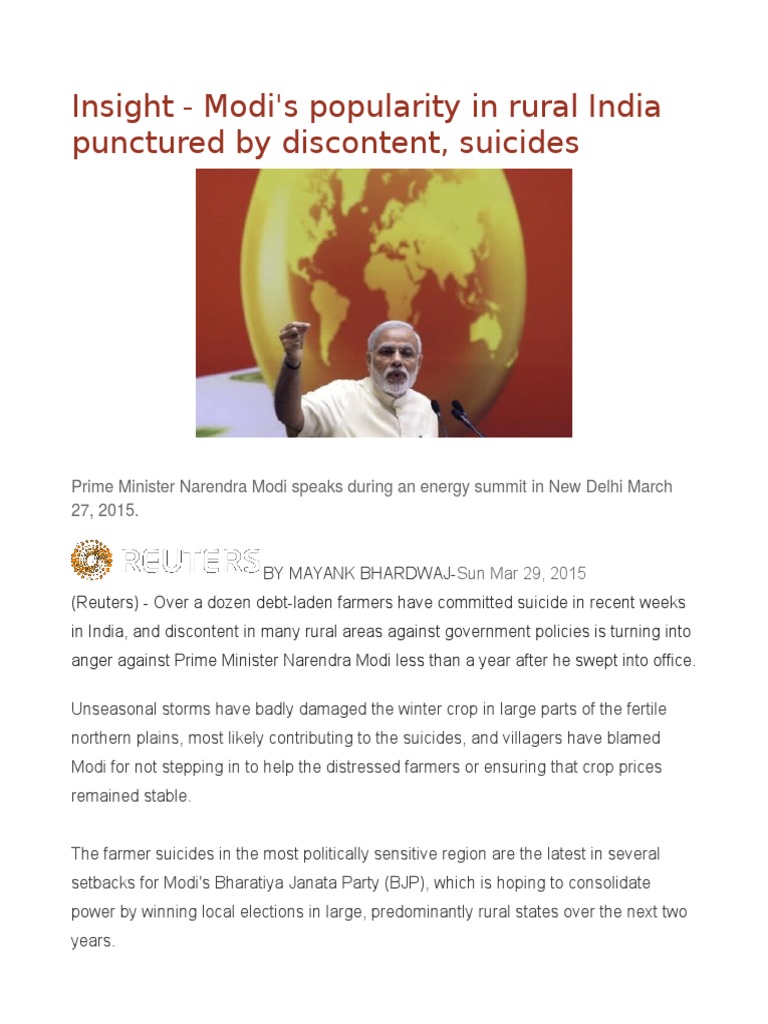 Modi tried to address the issue in a radio address last week, arguing that the land bill