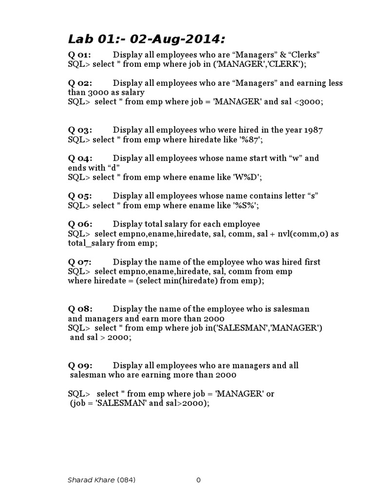 SQL> select * from emp where job = 'MANAGER' or