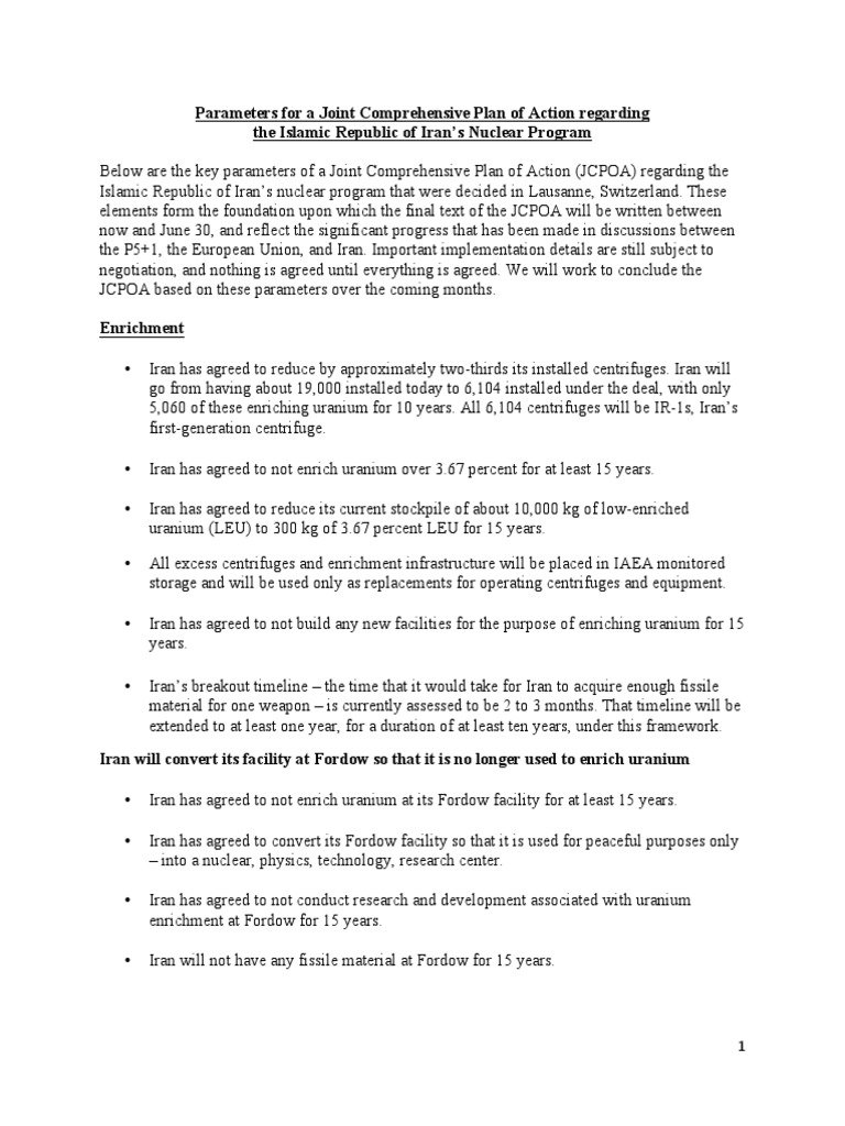 Parameters for a Joint Comprehensive Plan of Action regarding the Islamic Republic of Iran’s Nuclear Program