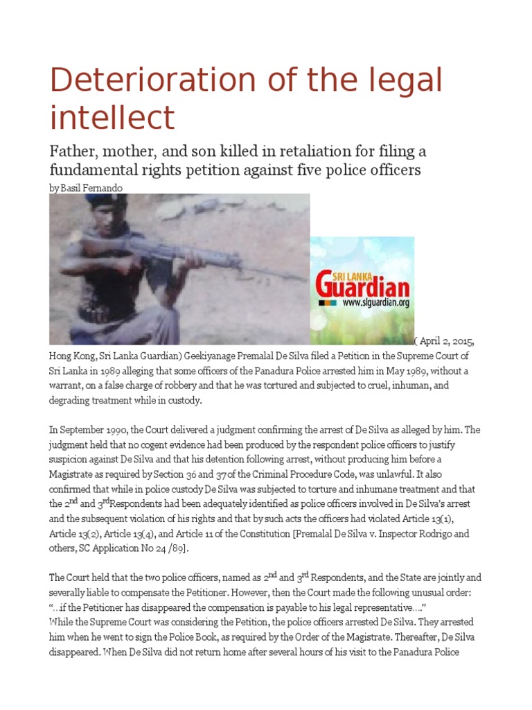 Hong Kong, Sri Lanka Guardian) Geekiyanage Premalal De Silva filed a Petition in the Supreme Court of