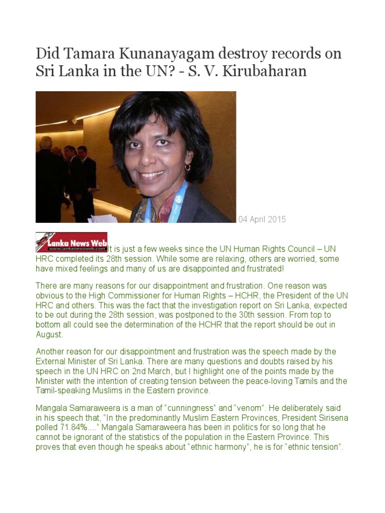 Tamara Kunanayagam to be united again on the basis of human wrongs and coverups.