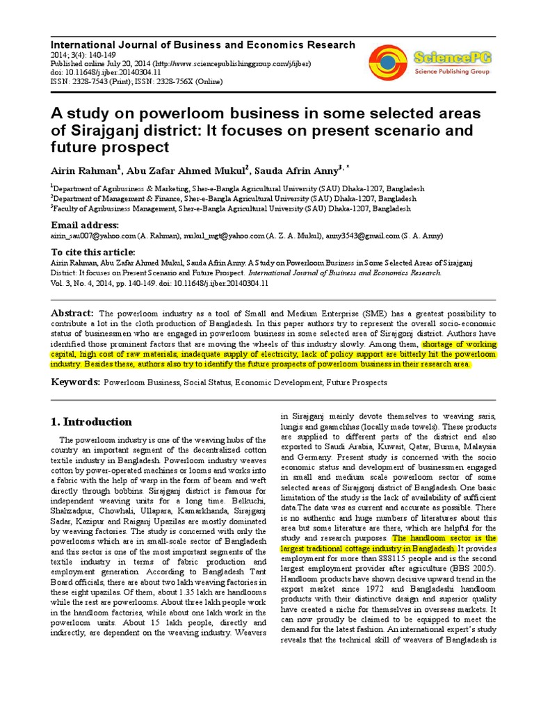 Airin Rahman, Abu Zafar Ahmed Mukul, Sauda Afrin Anny. A Study on Powerloom Business in Some Selected Areas of Sirajganj