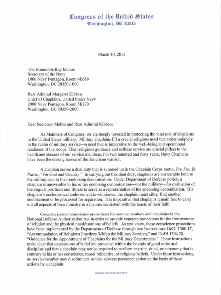 ‘As Members of Congress, we are deeply invested in protecting the vital role of chaplains