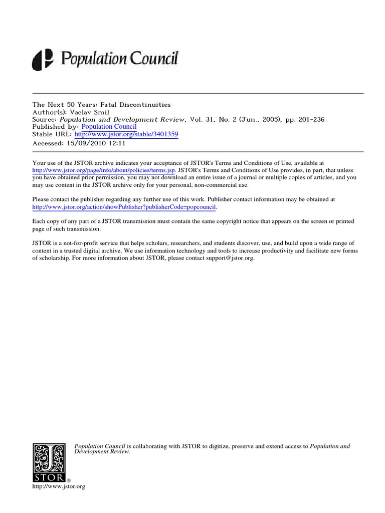 soon to be one with Nineveh (Ehrlich and Ehrlich 2004).1 This never-ending parade of grand forecasts has one thing in common: their outcomes are