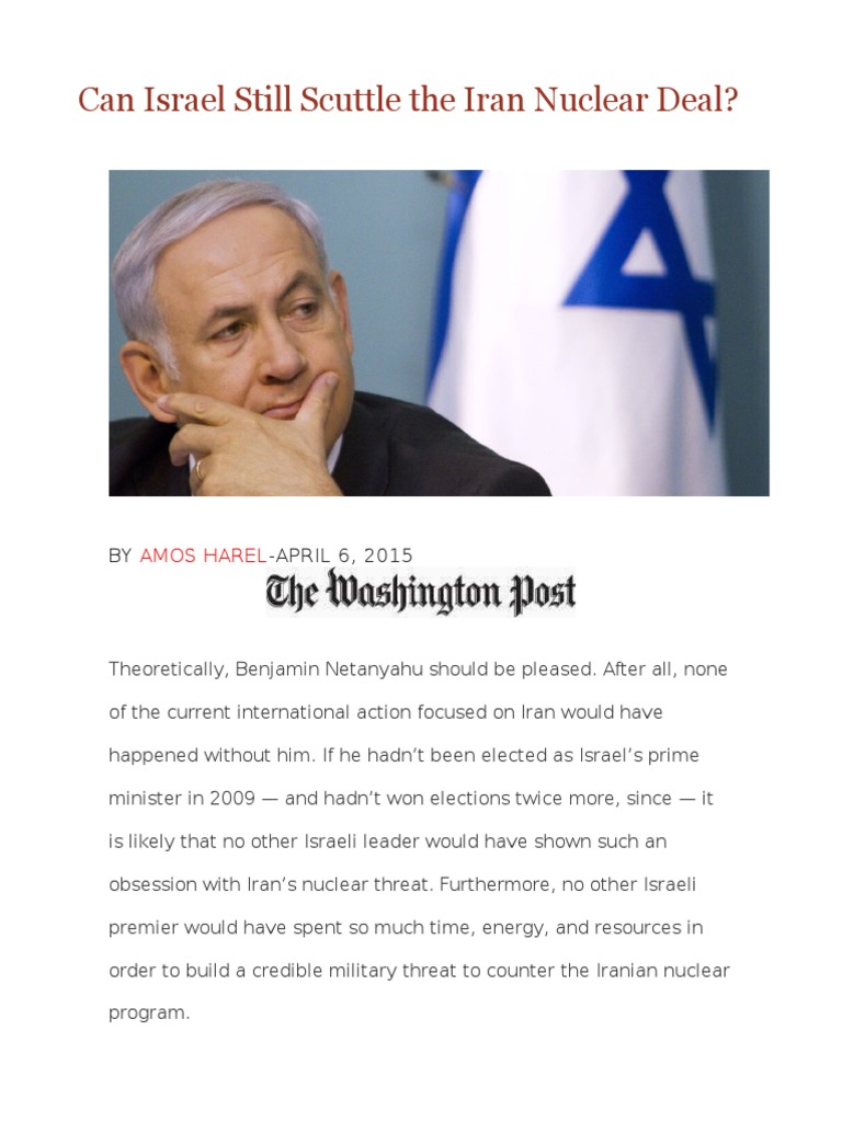 reduced to a minimum Israels ability to influence a deal he believes is an