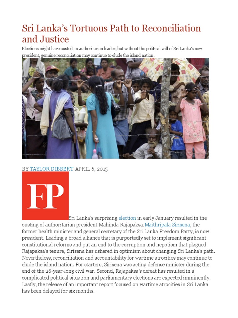 More specifically, Sirisena has promised to pursue accountability for wartime