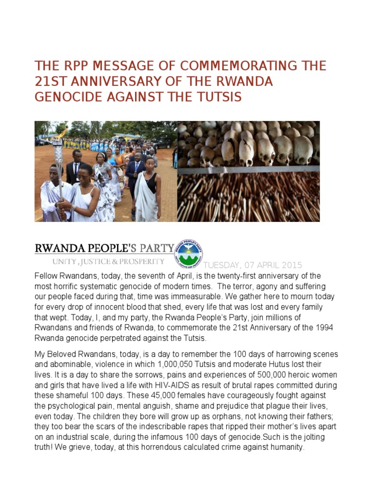 Fellow Rwandans, the past 21 years have been so difficult and painful for those of us