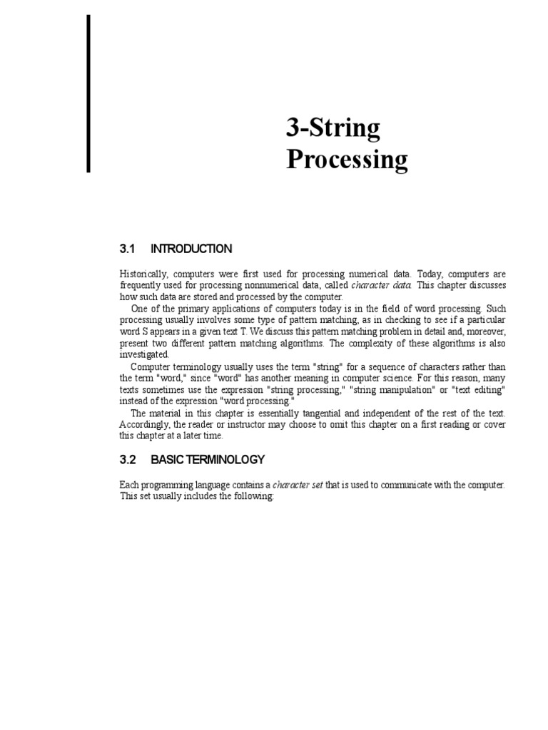 frequently used for processing nonnumerical data, called character data. This chapter discusses