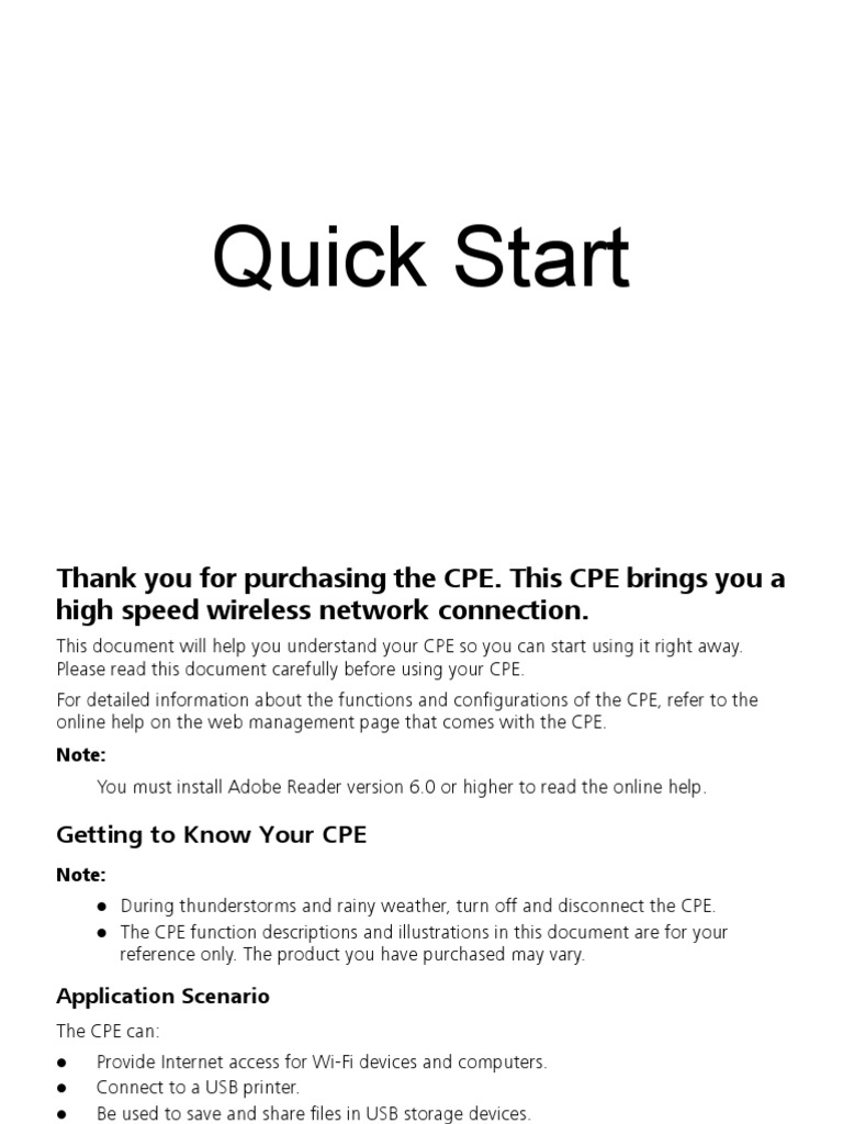 Please read this document carefully before using your CPE.