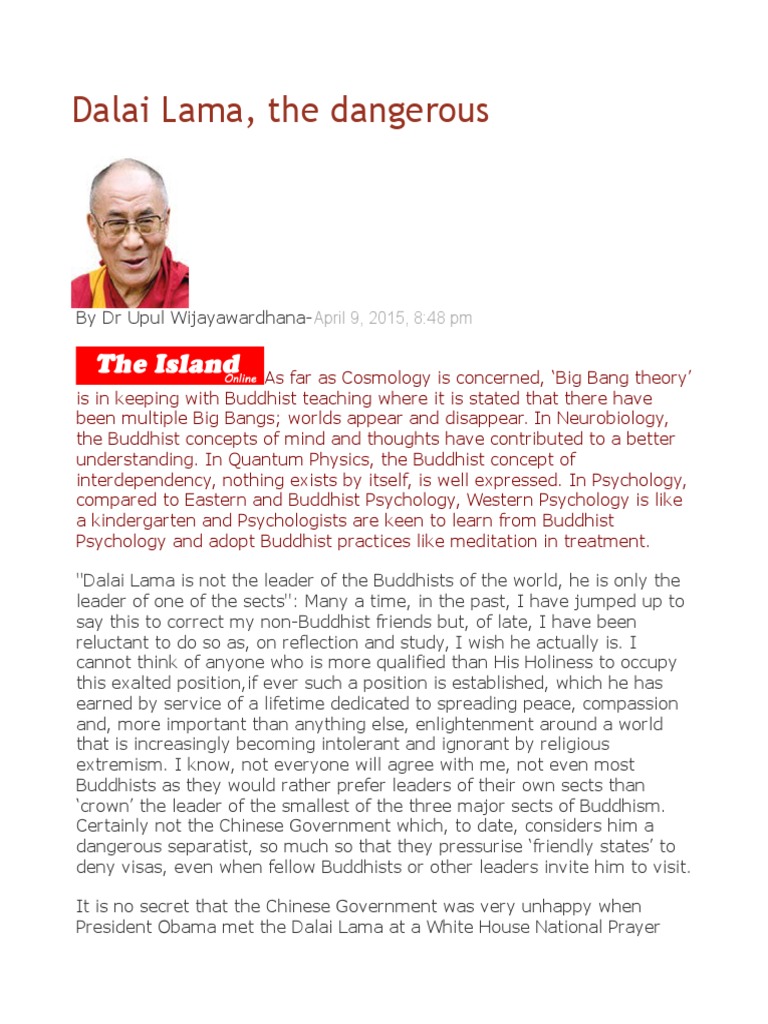 death; if not for the Dalai Lama, Buddhism enriching Science would not