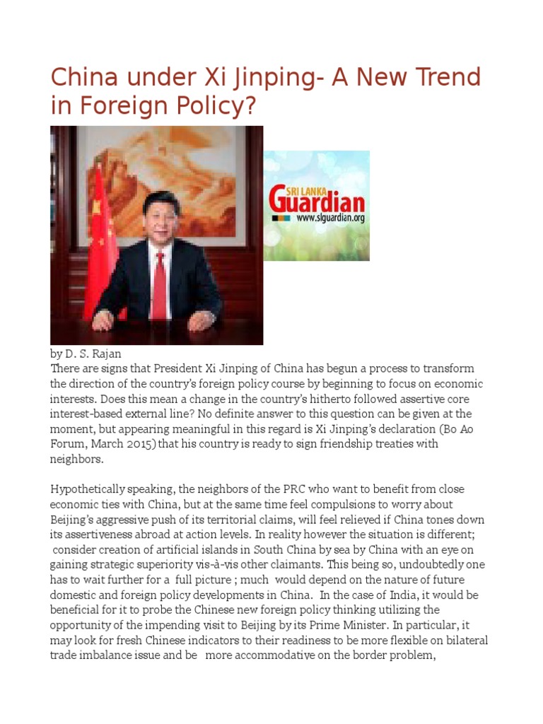issues. Signs confirming Chinas assertiveness include the repeated stress on