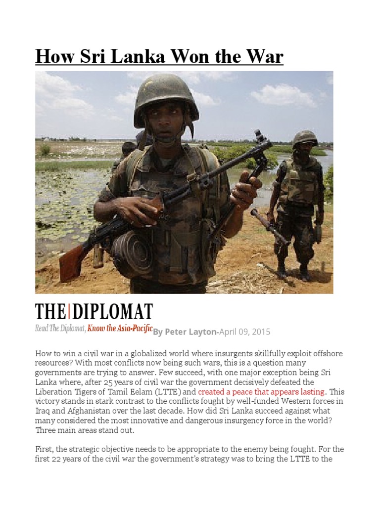 war, the strategies of successive Sri Lankan governments did not fulfill this criterion.