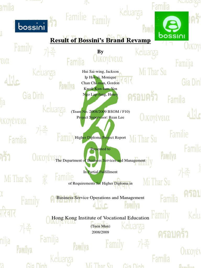 The purpose of this study is to investigate the result of Bossinis brand revamp