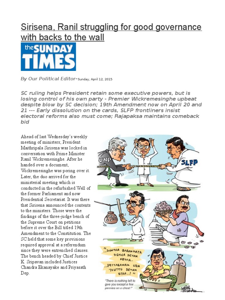 remaining constitutional amendments. Sirisena was in agreement and declared that the SC