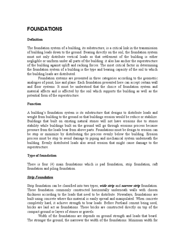 There is four (4) main foundations which is pad foundation, strip foundation, raft