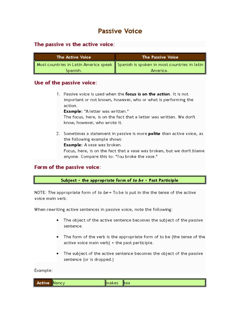 NOTE: The appropriate form of to be = To be is put in the the tense of the active