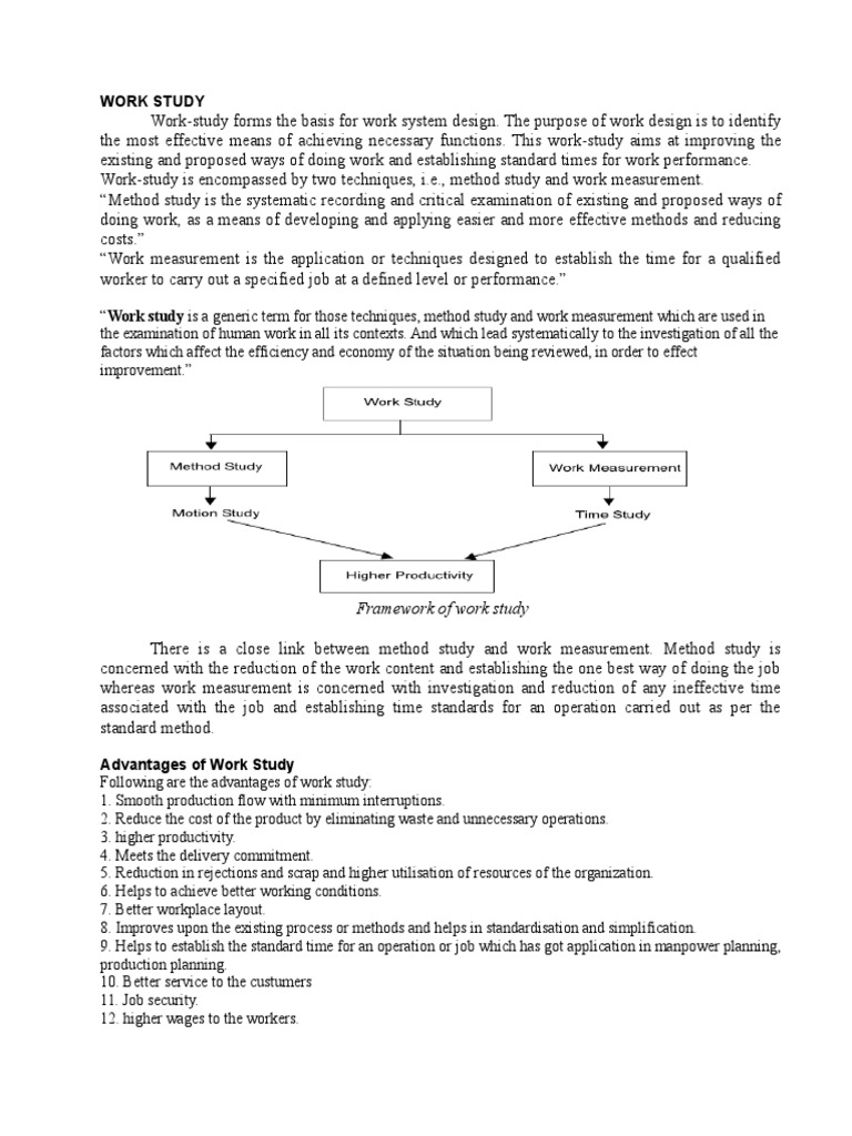 Work-study forms the basis for work system design. The purpose of work design is to identify