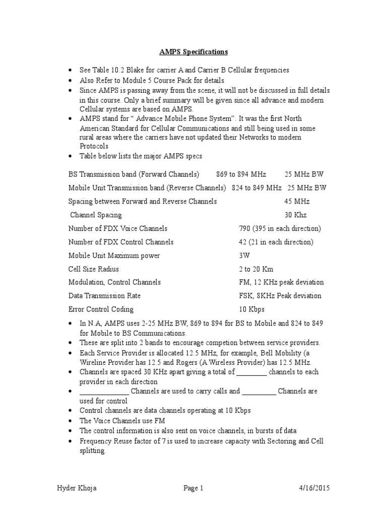 AMPS Specifications