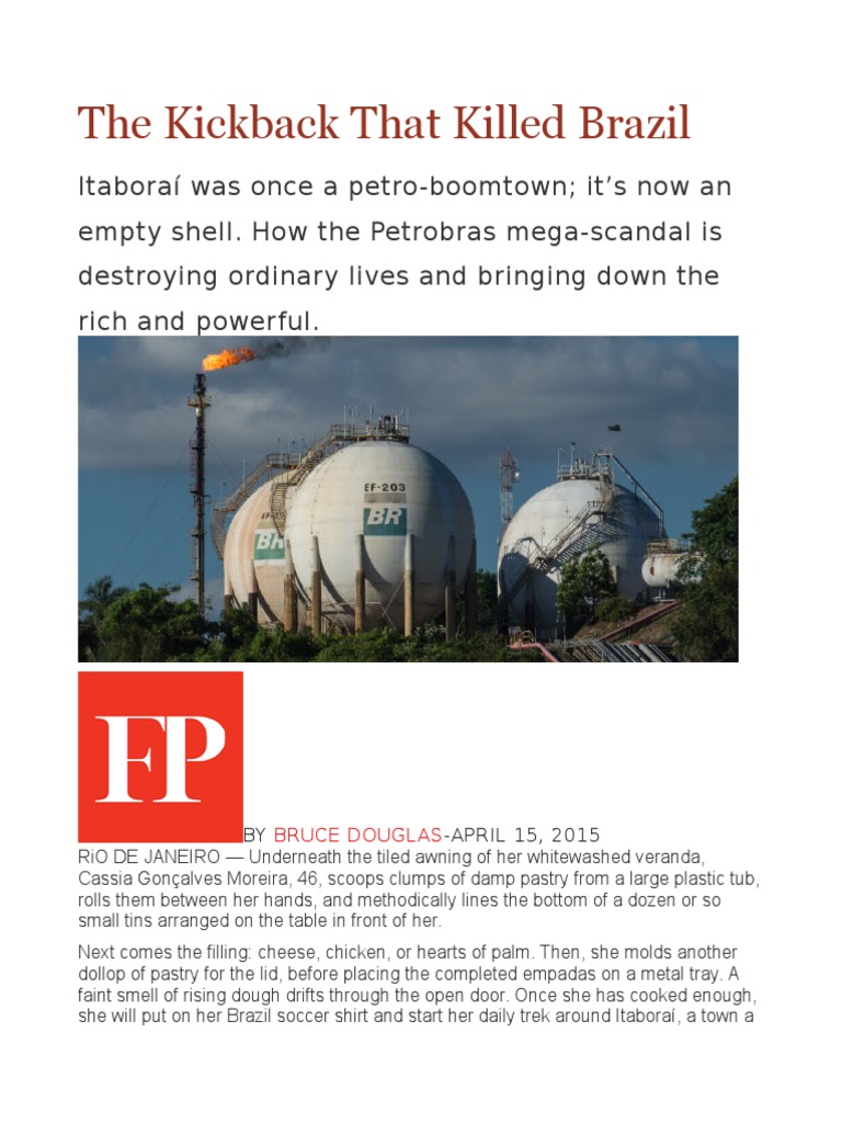 Now, what may be the worst corruption scandal in Brazilian history is turning Itabora