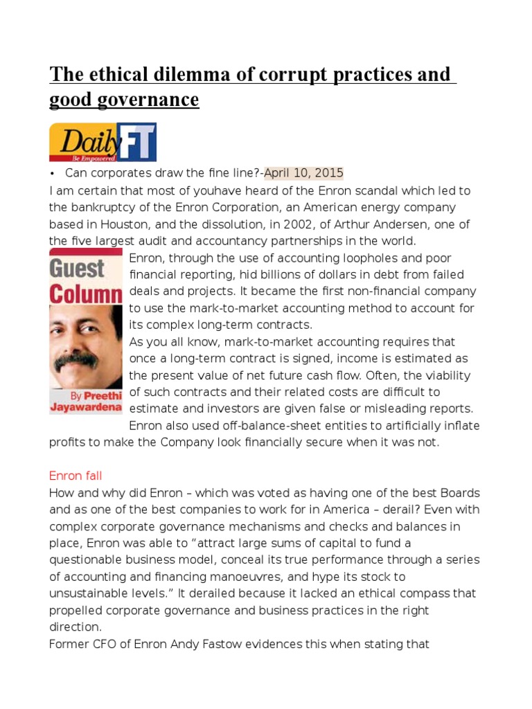 Former CFO of Enron Andy Fastow evidences this when stating that