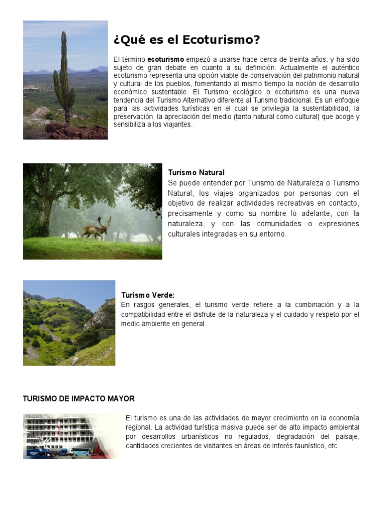 económico sustentable. El Turismo ecológico o ecoturismo es una nueva