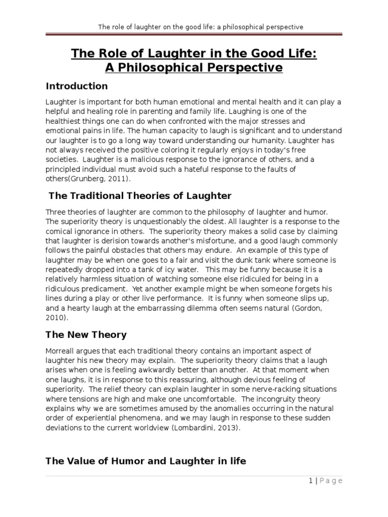 life. Philosophers characterize laughter in a limited and unreasonable group of