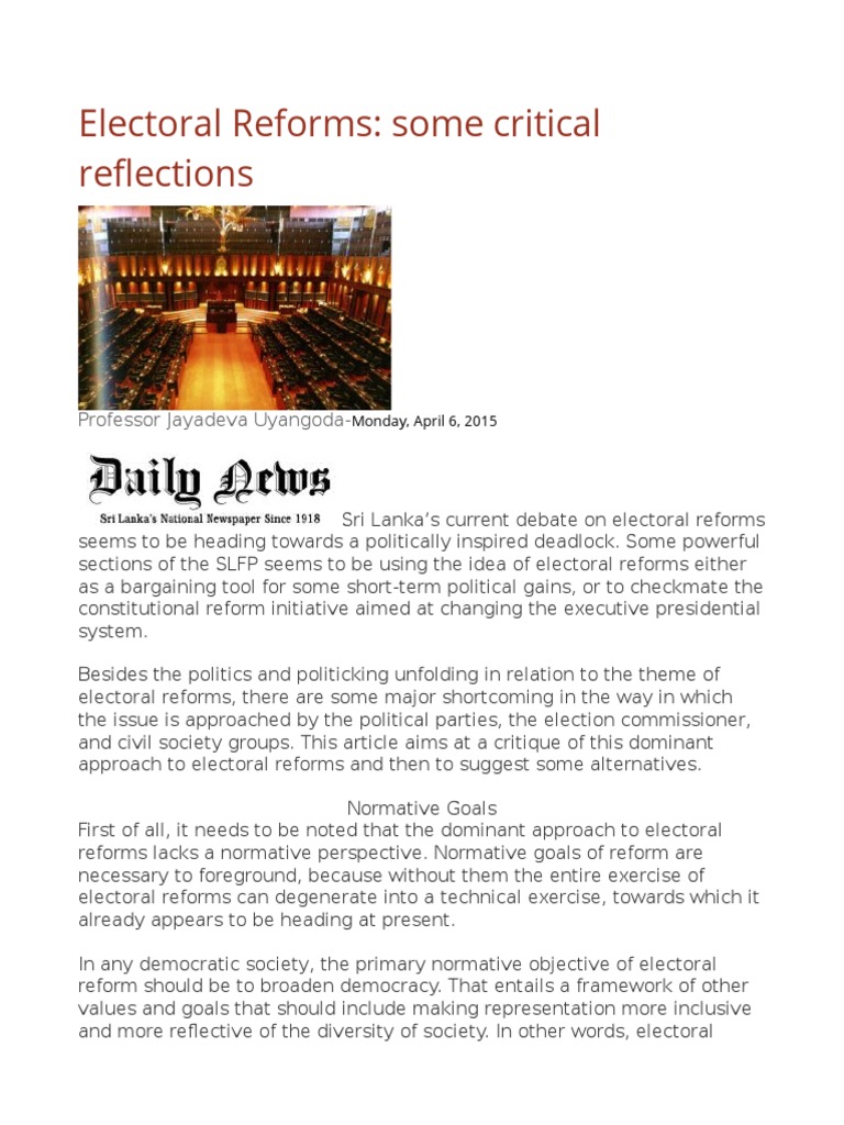that if the current proposals are accepted to reform Sri Lankas electoral