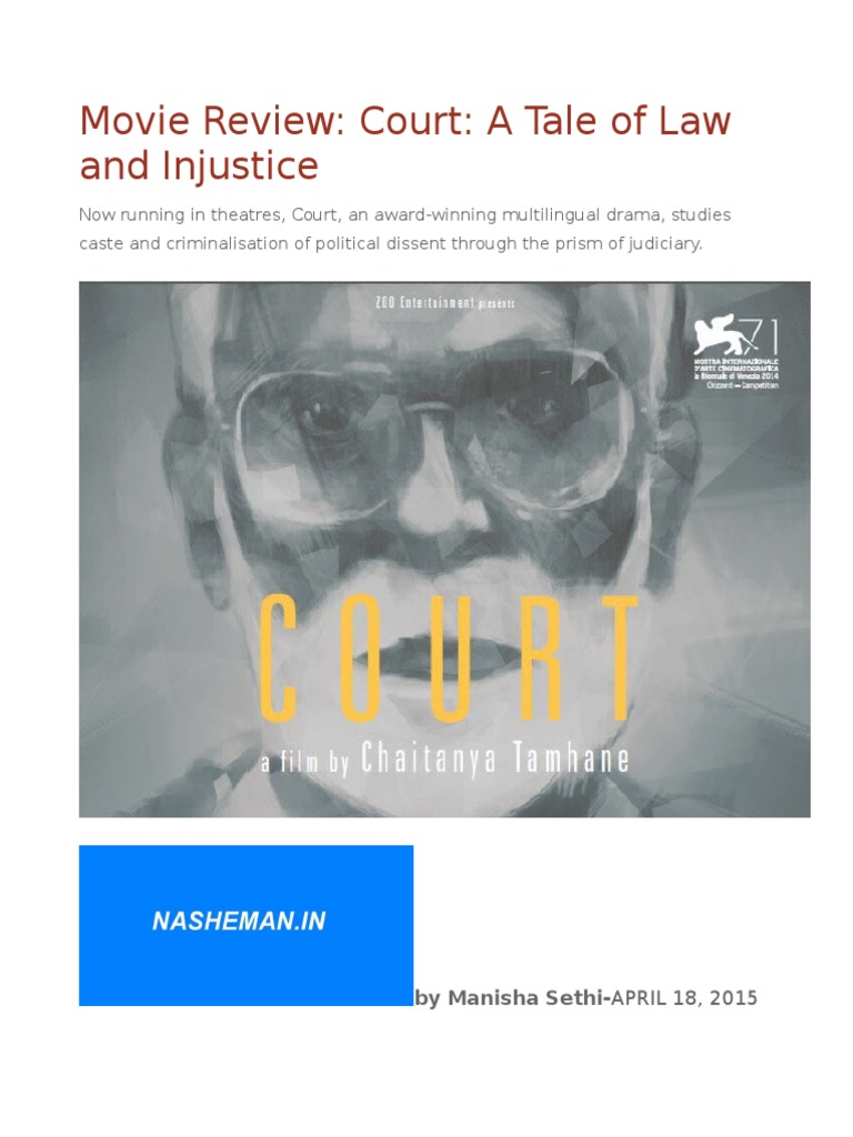 Now running in theatres, Court, an award-winning multilingual drama, studies