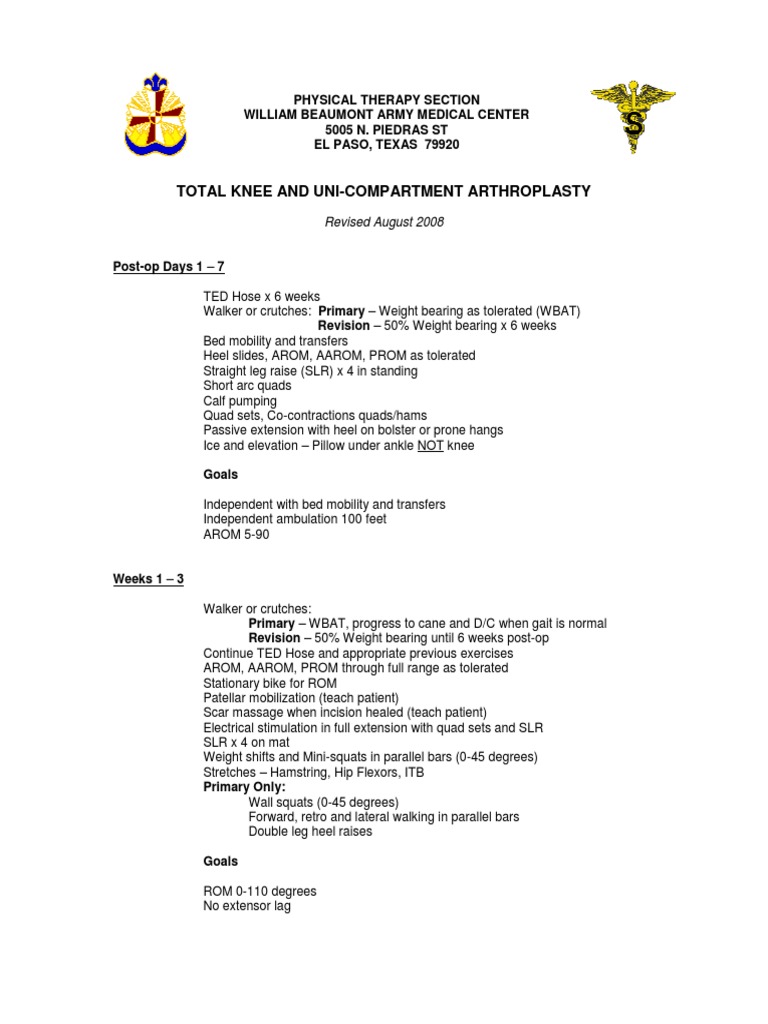 TOTAL KNEE AND UNI-COMPARTMENT ARTHROPLASTY