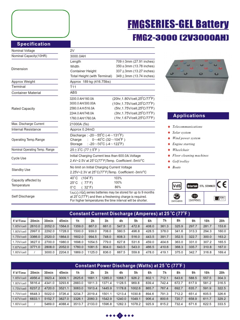 2.4V~2.5V at 25 C(77 F)Temp. Coefficient -5mV/ C