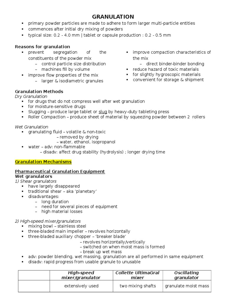 Wet Granulation