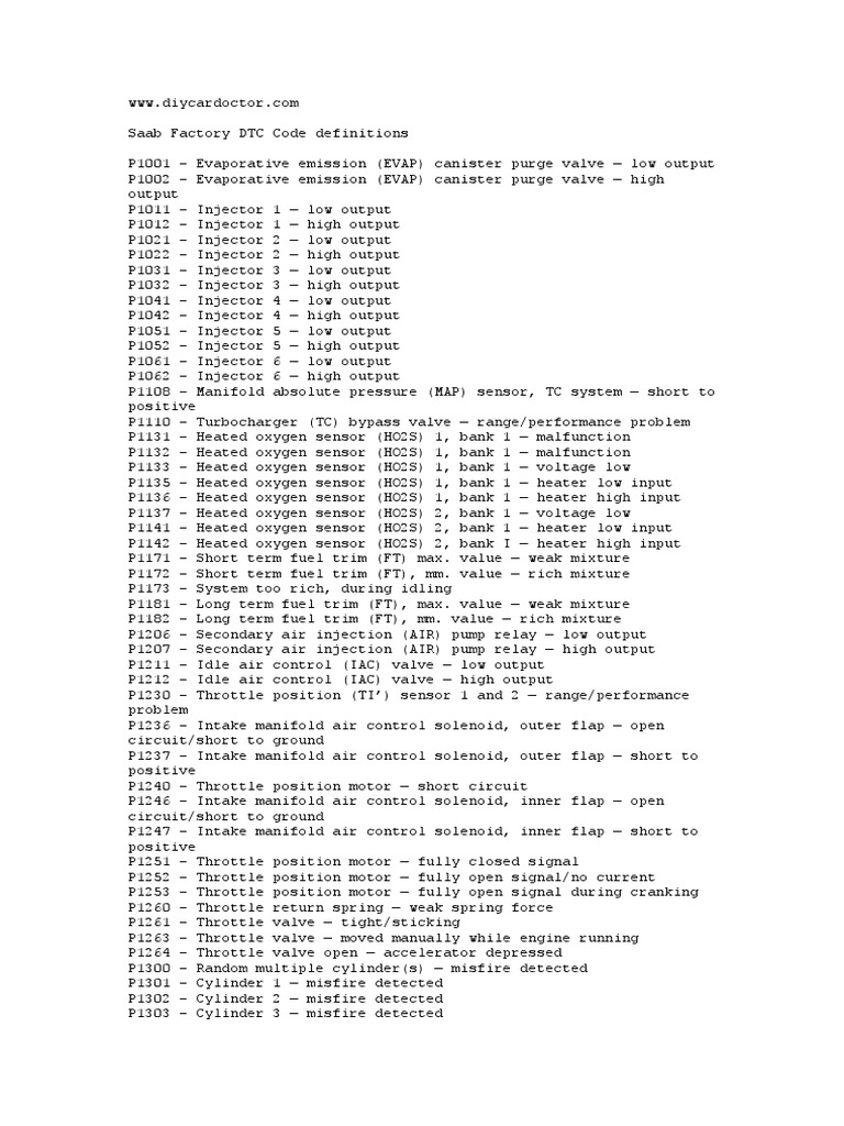 Saab Factory DTC Code definitions