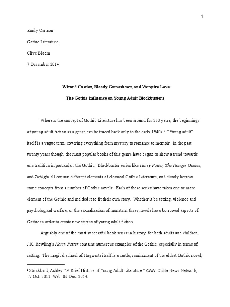 one tradition in particular: the Gothic. Blockbuster series like Harry Potter, The Hunger Games,